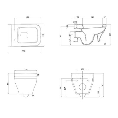οριζόντια αποχέτευση (P), συμπαγές κάλυμμα UF slow drop με χρωμέ βάσεις.