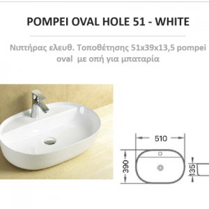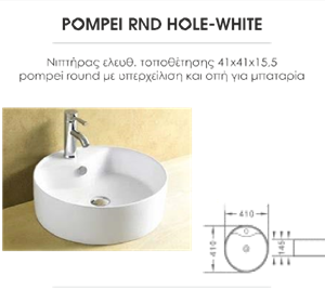 Χαρακτηριστικά: χωρίς οπή για μπαταρία, κατάλληλος για τοποθέτηση πάνω σε πάγκο ή έπιπλο, κατόπιν παραγγελίας διατίθεται σε αποχρώσεις κόκκινο, πορτοκαλί, μαύρο, μπλε, γκρι μπεζ και πέργαμον. Διαστάσεις: Ø 400 x 110 mm