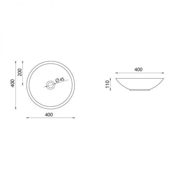 Χαρακτηριστικά: χωρίς οπή για μπαταρία, κατάλληλος για τοποθέτηση πάνω σε πάγκο ή έπιπλο, κατόπιν παραγγελίας διατίθεται σε αποχρώσεις κόκκινο, πορτοκαλί, μαύρο, μπλε, γκρι μπεζ και πέργαμον. Διαστάσεις: Ø 400 x 110 mm