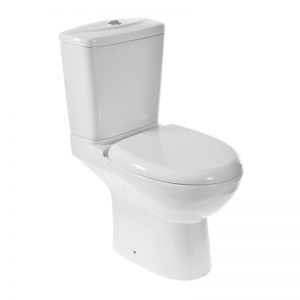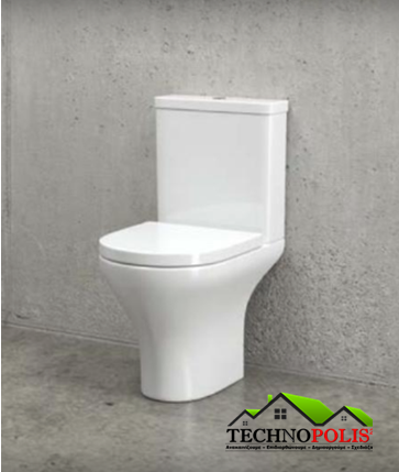 Χαρακτηριστικά:λεκάνη χαμηλής πίεσης με οριζόντια αποχέτευση (P), καζανάκι παροχής πυθμένα με μηχανισμό διπλής ροής, συμπαγές πλαστικό κάλυμμα slow drop